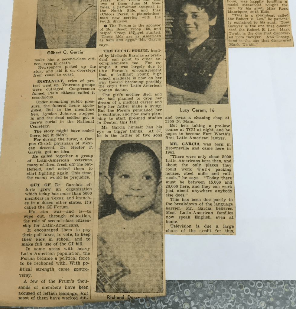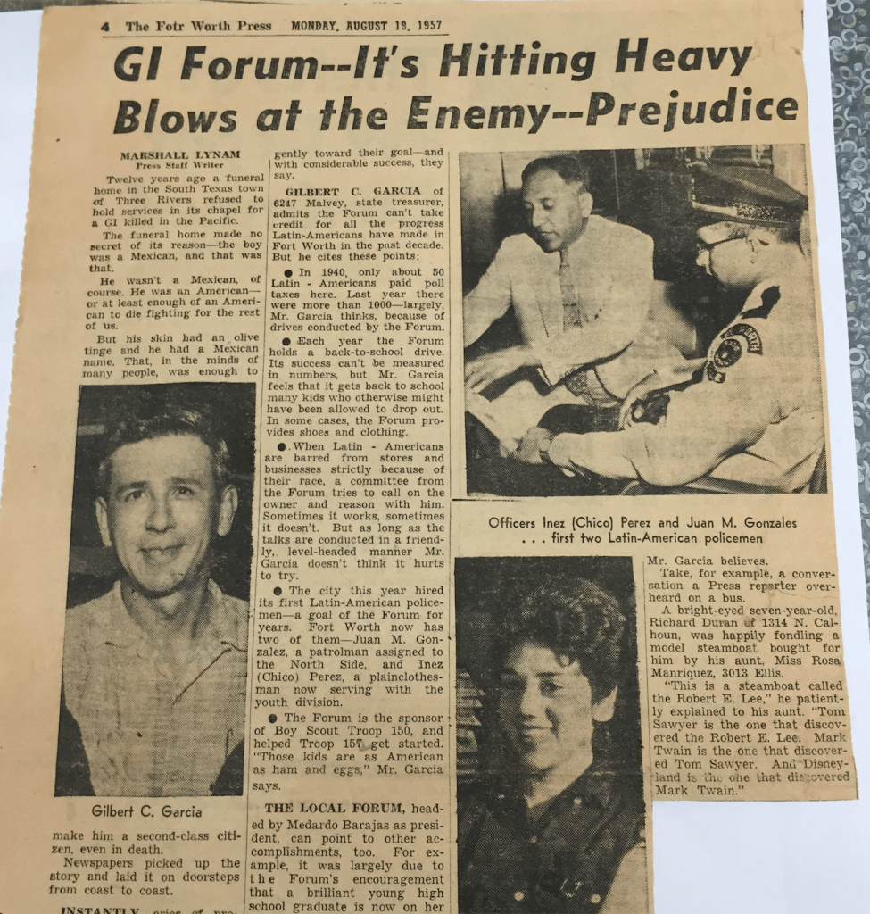 Fort Worth Press – American G.I. Forum August 1957 Share this: Share on X (Opens in new window) X Share on Facebook (Opens in new window) Facebook Like Loading...